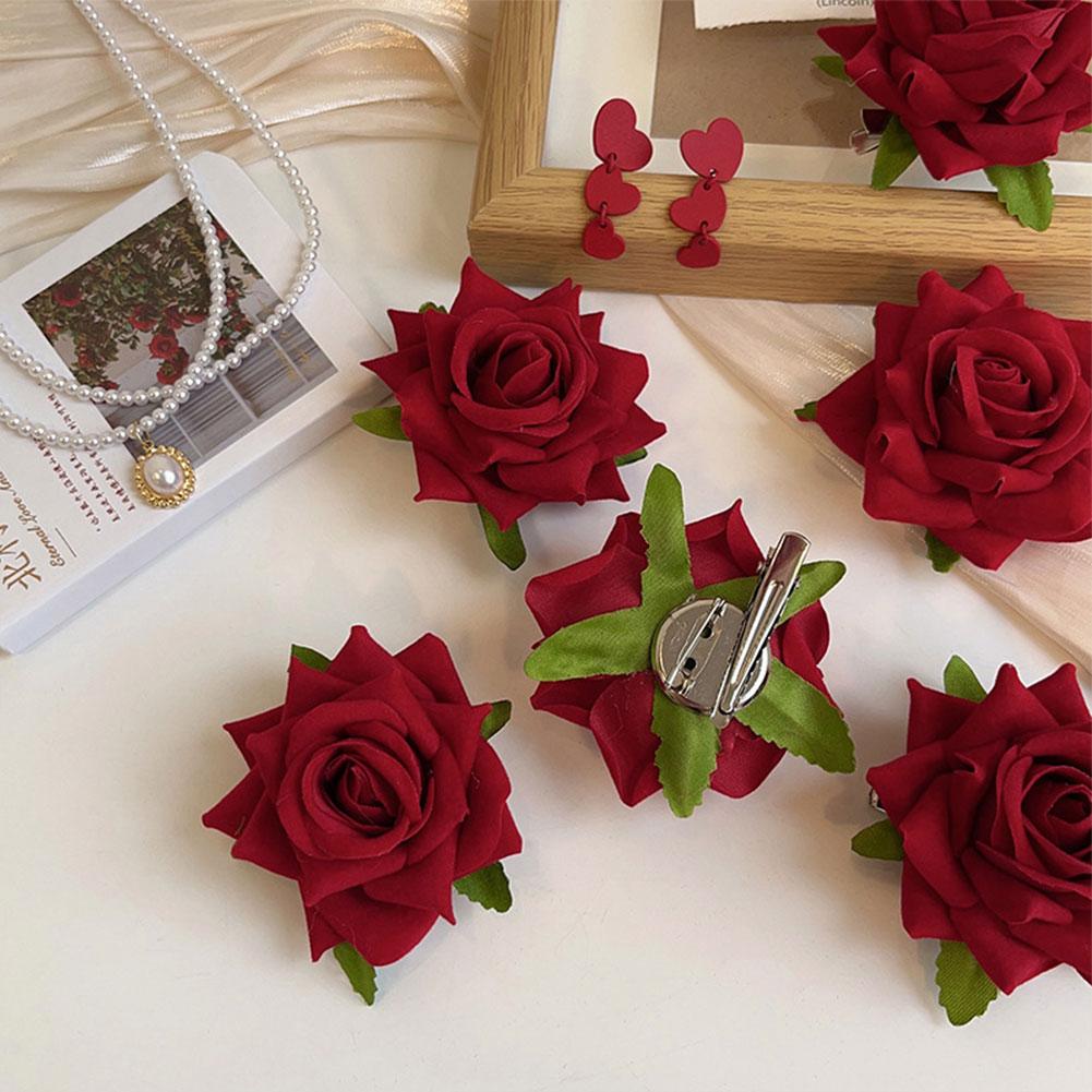 Retro Red Pink Rose Flower Classy Elegant Fashionable Hairpin Side Clip Brooch Women Korean Fashion Hair Clip Headwear
