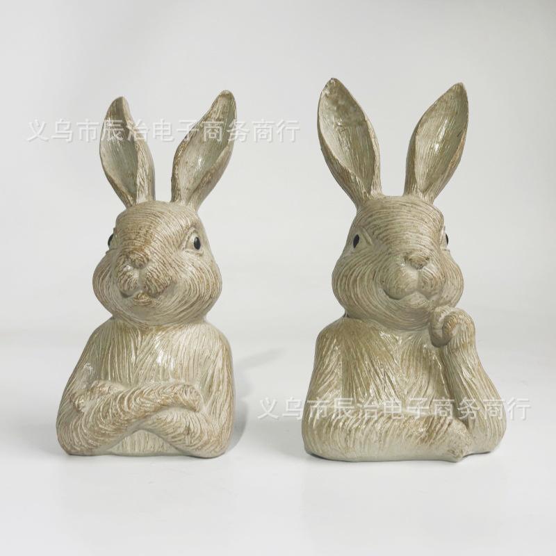 Pastorales Harzkaninchen 2-teiliges Set, Desktop-Dekorationsornament, Retro- und alte amerikanische Landgartenstatue