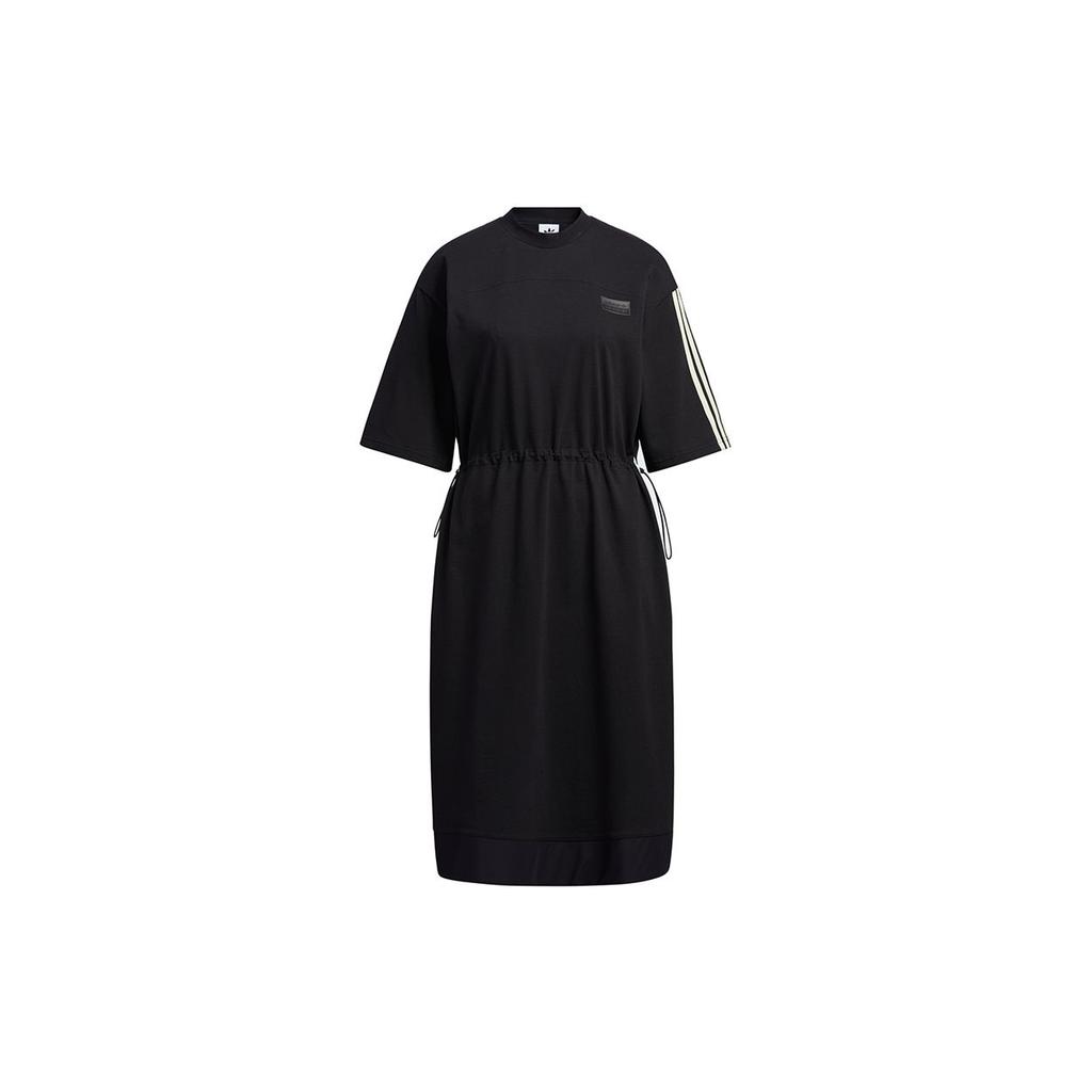 Adidas Originals Ryv Dress Casual Breathable A-Line Round Neck Short Sleeve Dress Women dresses Black H39023