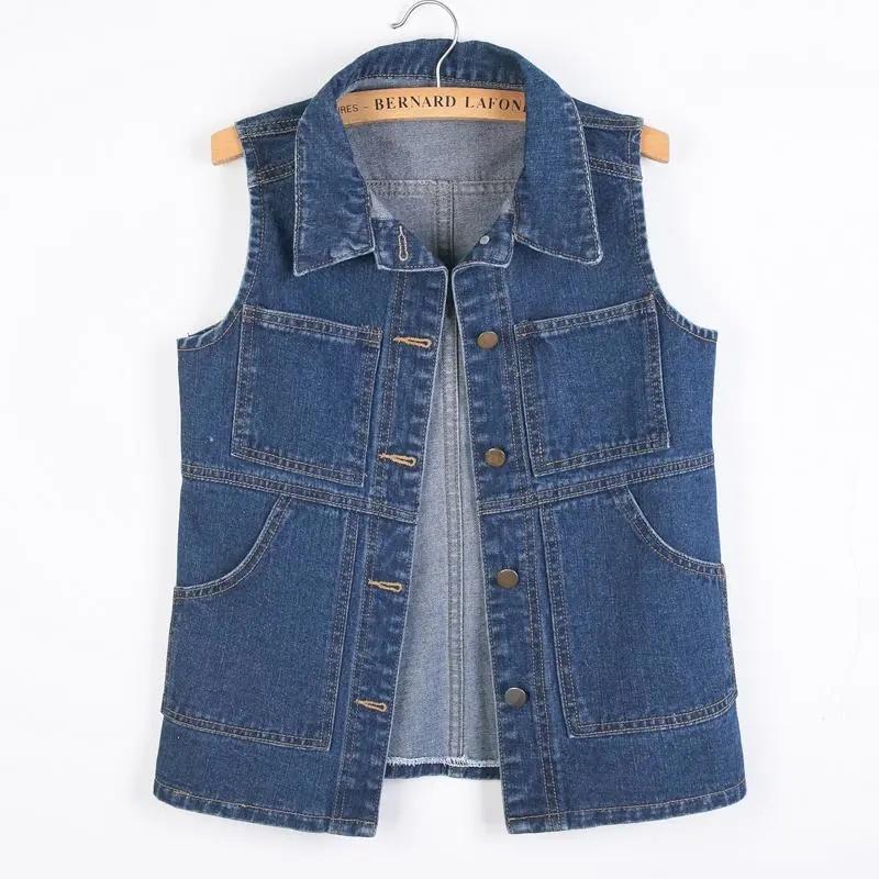Mittlere Länge Jeansweste Frauen Frühling Herbst Slim Jeans Weste Jacken Weibliche Casual Ärmellose Westen Cowboy Mantel Tops
