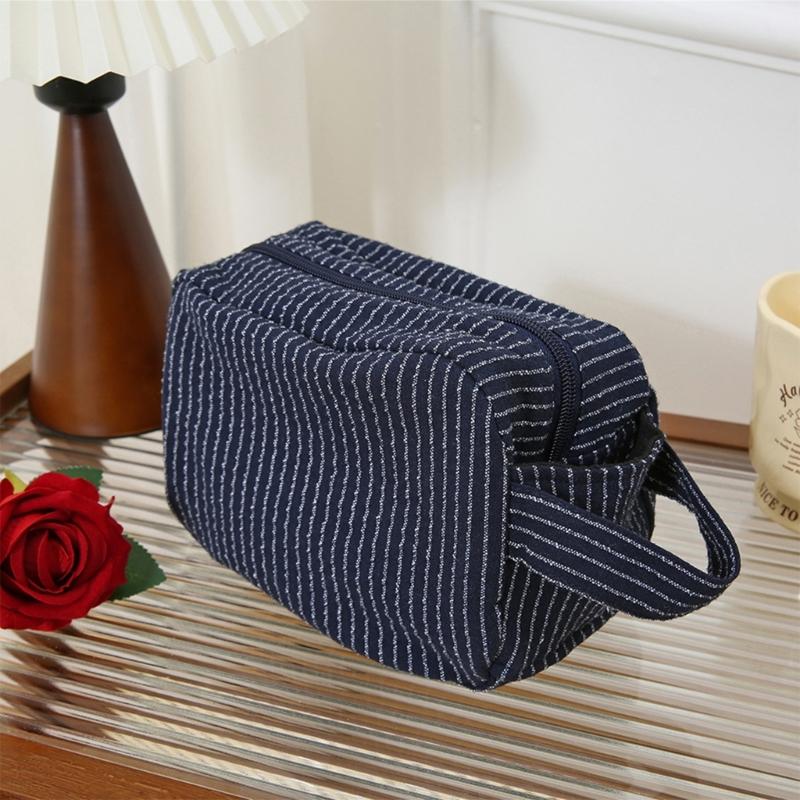 Große gestreifte Reise-Organizer-Tasche Perfekt für Make-up Hautpflege und Toilettenartikel Hergestellt aus hochwertigem Polyestergewebe