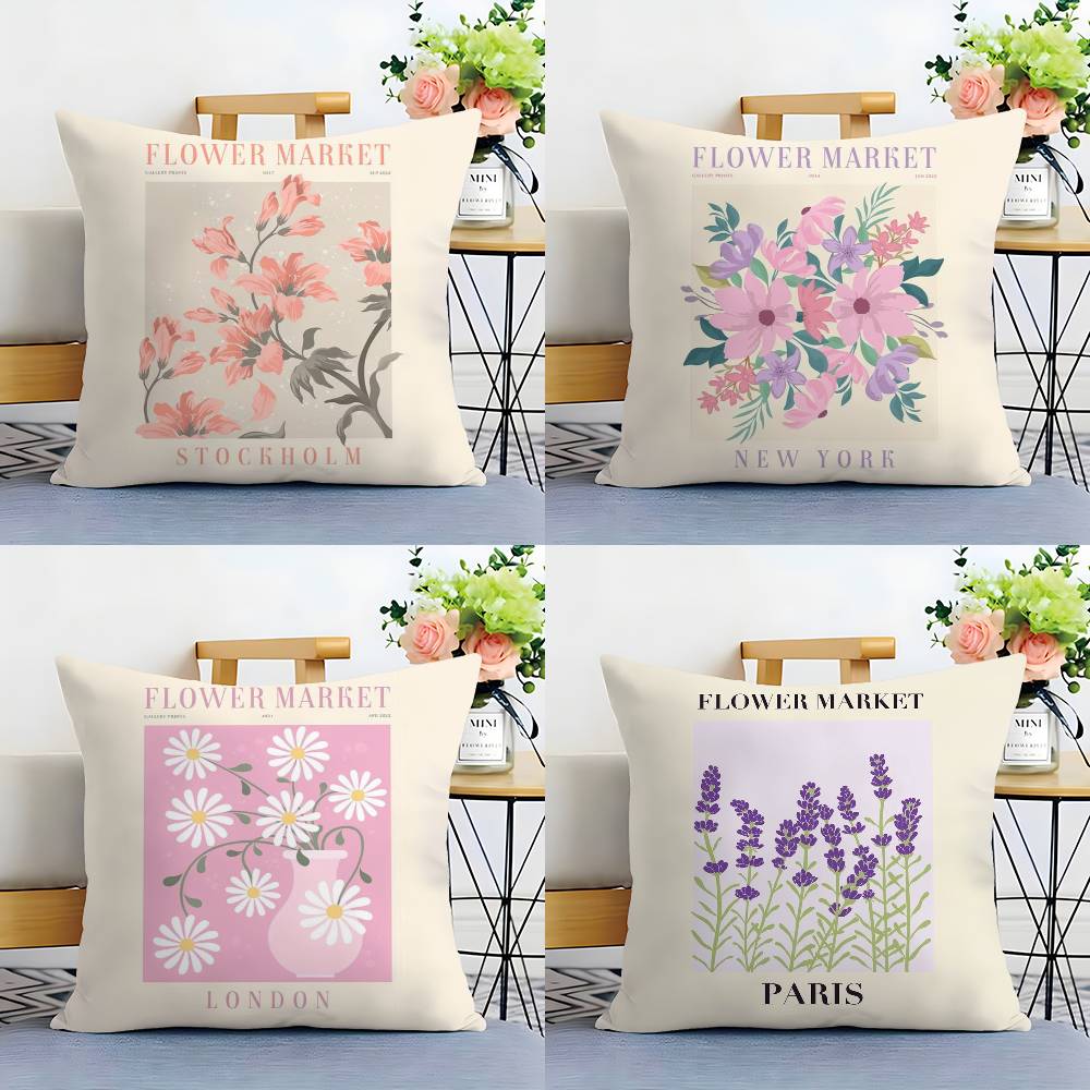 Home Decor Flower Market Prints from Different Cities Pattern Cushion Cover Suitable for Sofa Bedroom Car Pillow Cover