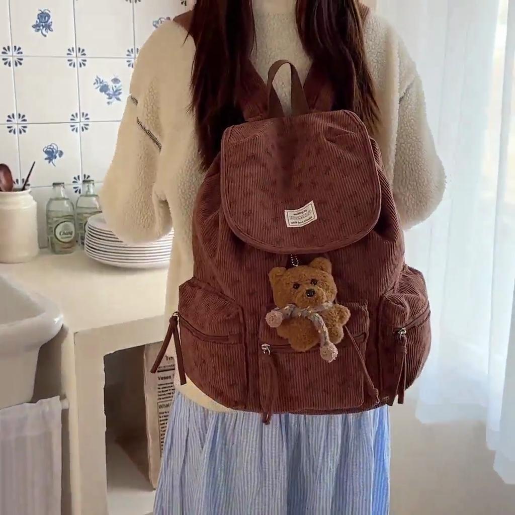 Cord-Schleifen-Rucksack Damen Leichter Zugband-Pendlerrucksack