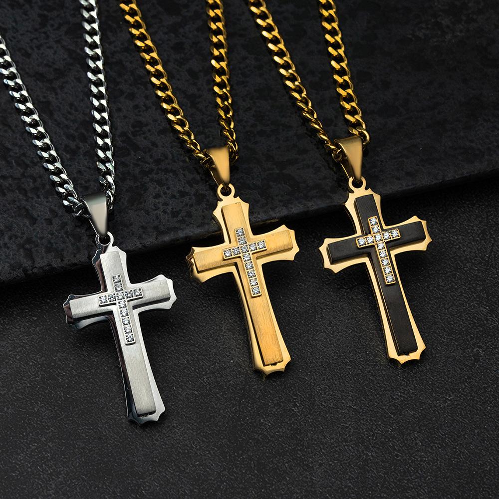2026 Necklace Men's Multilayer Cross with Diamond Zircon Pendant Popular Jewelry