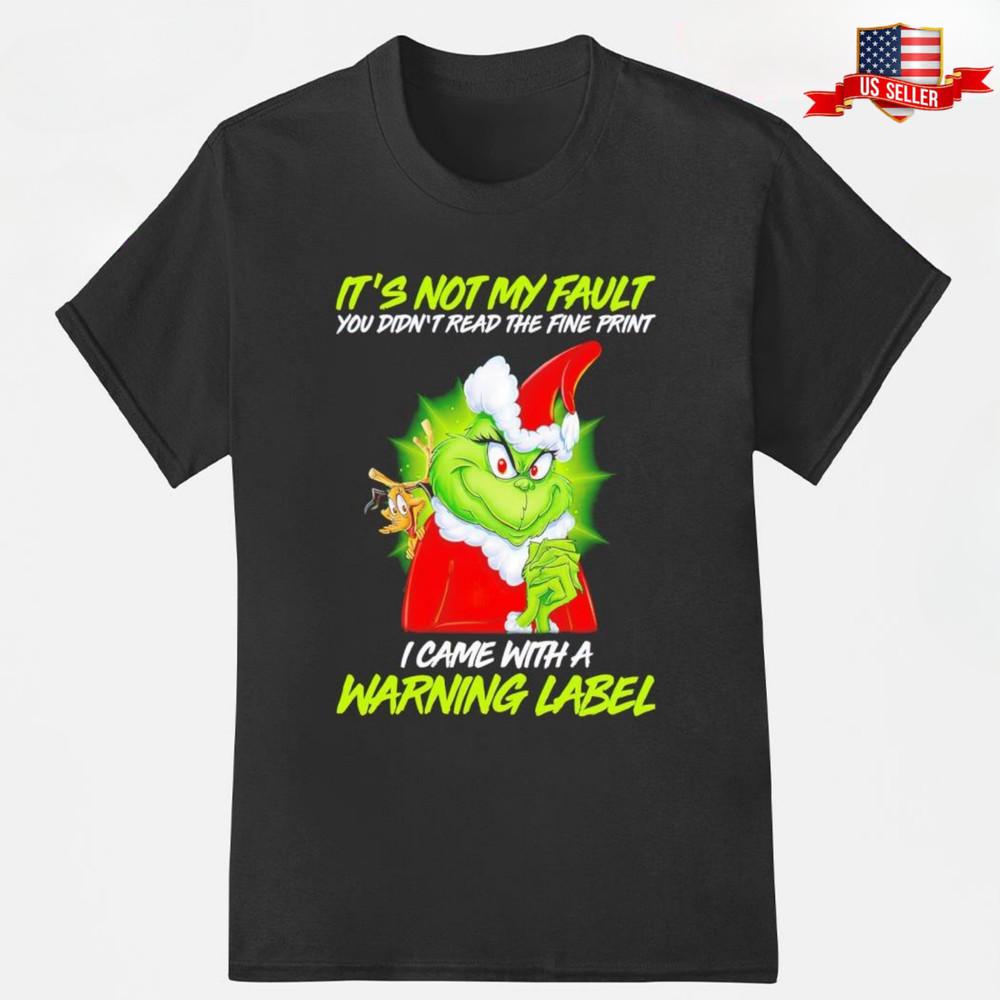 Funny Grinch Warning Label Christmas T-Shirt, Holiday Humor Xmas Gift Tee Unisex Unisex T-Shirt