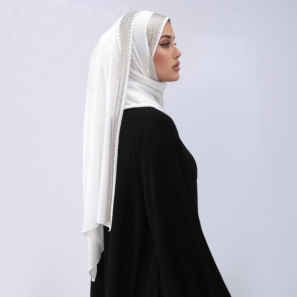 Glitzernder Strass-Baumwoll-Jersey Muslimischer Hijab Langes Tuch Damen Kopfbedeckungen Schal Turban Einfaches Stirnband Malaysia Tudung Ramadan