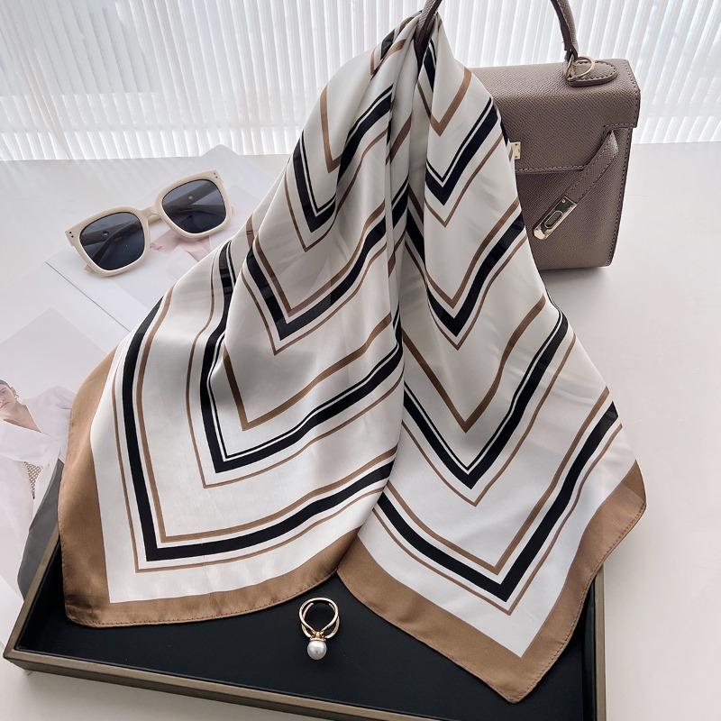 68Cm Striped Pattern Scarf Women'S New Spring And Autumn Style Fashionable Scarf Trendy And Versatile Shawl Headscarf