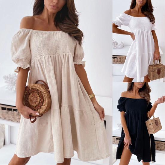 Off-Shoulder-Design zeigt Ihre schöne Schulter und Nacken kurvig und lässt Sie sexy aussehen. Und das große Gerüschensaumdesign lässt das Kleid elegant aussehen.
