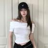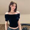 Damen Schwarzes Off-Shoulder Raffiniertes Kurzarm Figurbetontes Cropped Top Lässige Tägliche Bluse