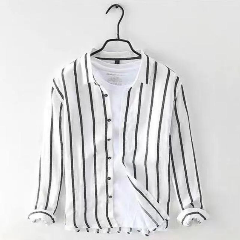 Vielseitiges Neues Gestreiftes Langarmhemd für Herren Lässig Dünn Koreanischer Stil Dünnes Trendiges Hemd