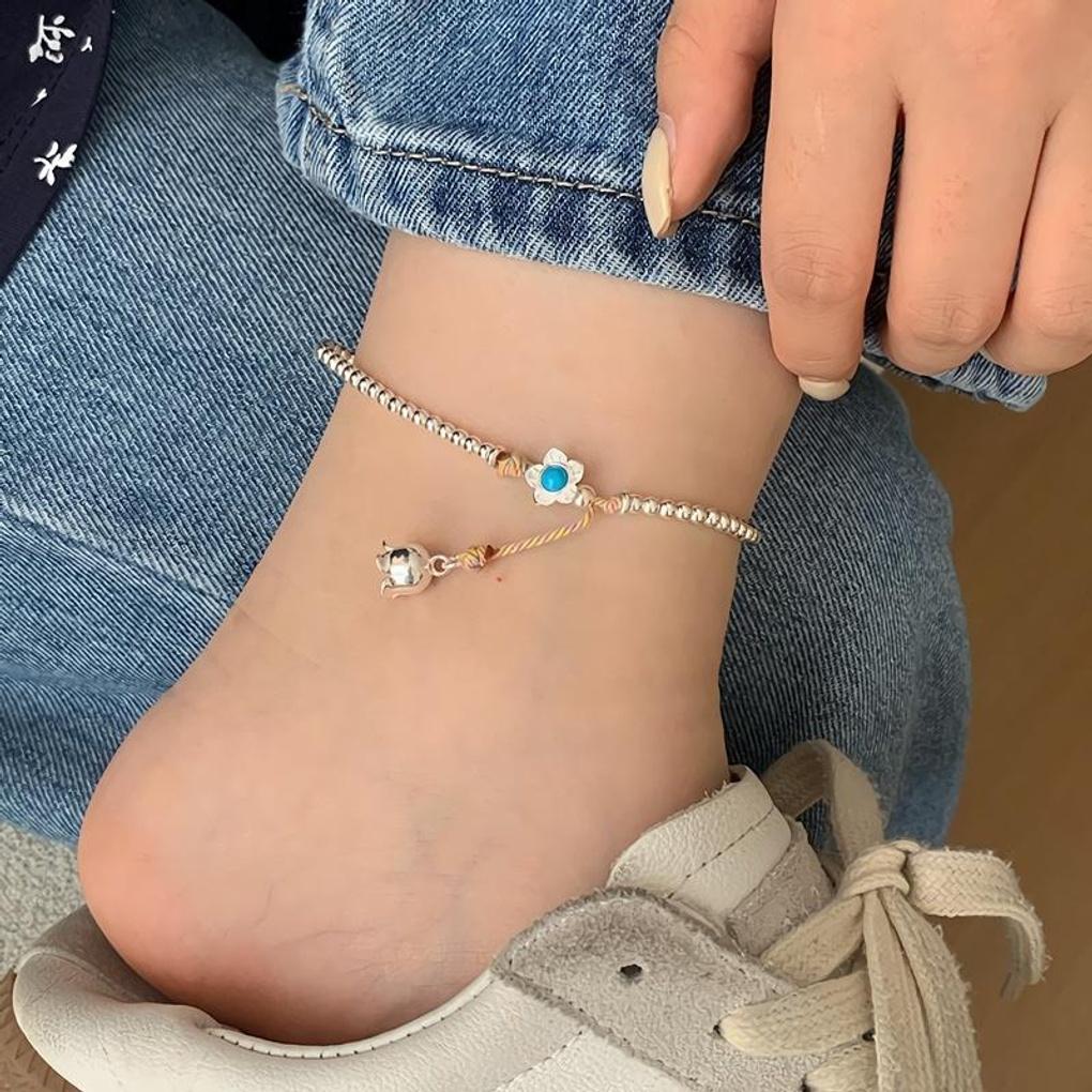 Damen Silber 925 Perlenblume Tropfen Perlen Fußkettchen