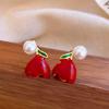 Retro temperament geometric zircon resin cherry stud earrings exquisite earrings women