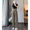 New Arrival Summer Ice Silk Suit Pants for Women with High Waist Wide Legs Drooping Pear-shaped Body Relaxed Straight Versatile Trousers