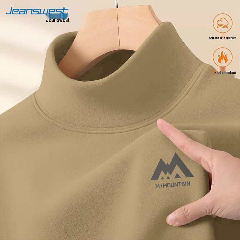 Jeanswest Men's Winter Fleece-Lined Mock Neck Long Sleeve T-shirt
