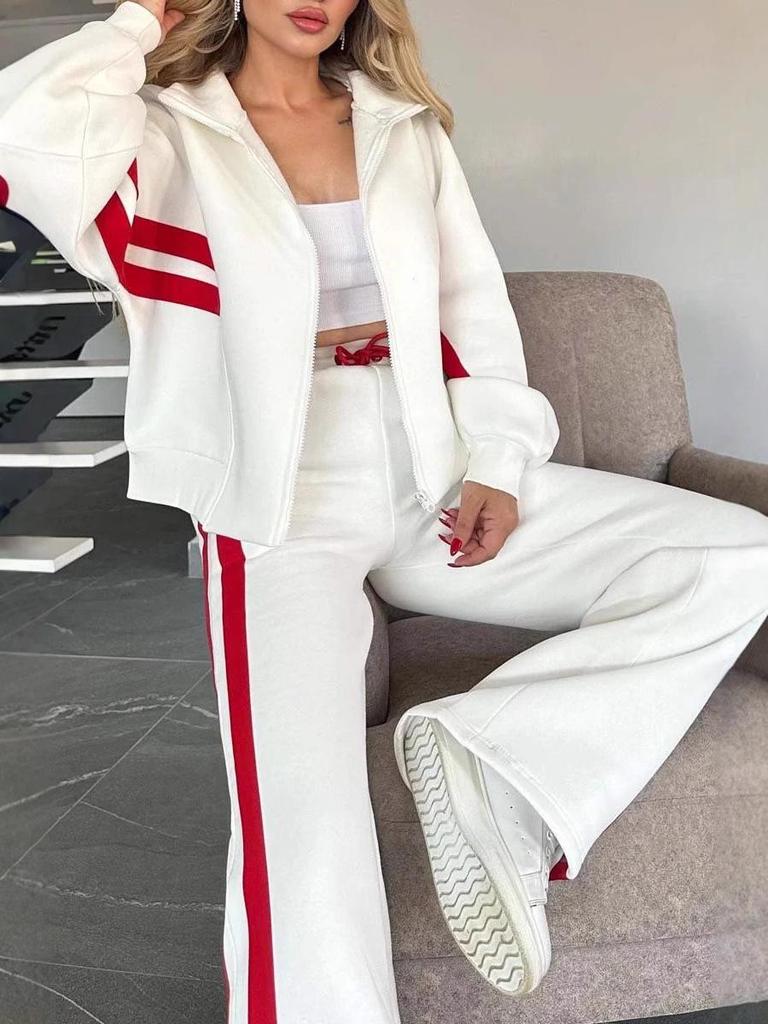 Entdecken Sie eine schicke und vielseitige Ergänzung für Ihre Garderobe mit dieser gestreiften Reißverschluss-Jacke und dem lässigen Sportswear-Set für Damen. Dieses Set, vollständig aus hochwertigem Polyester gefertigt, bietet sowohl Komfort als auch Langlebigkeit.. Der lässige Stil ist perfekt für entspannte Ausflüge oder Athleisure-Looks und verbindet nahtlos Mode mit Funktionalität.. Die Jacke verfügt über einen stilvollen Reißverschluss, der dem klassischen Streifendesign einen Hauch von modernem Flair verleiht.. Egal, ob Sie ins Fitnessstudio gehen oder einen Wochenend-Brunch genießen, dieses Sportbekleidungsset sorgt dafür, dass Sie es stilvoll tun.