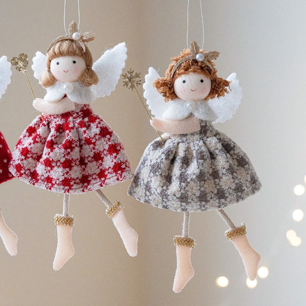 Hochwertiger Stoffengel-Mädchen-Anhänger Rot Weiß Grau DIY-Dekoration Weihnachts-Puppen-Anhänger Hängende Ornamente Weihnachten