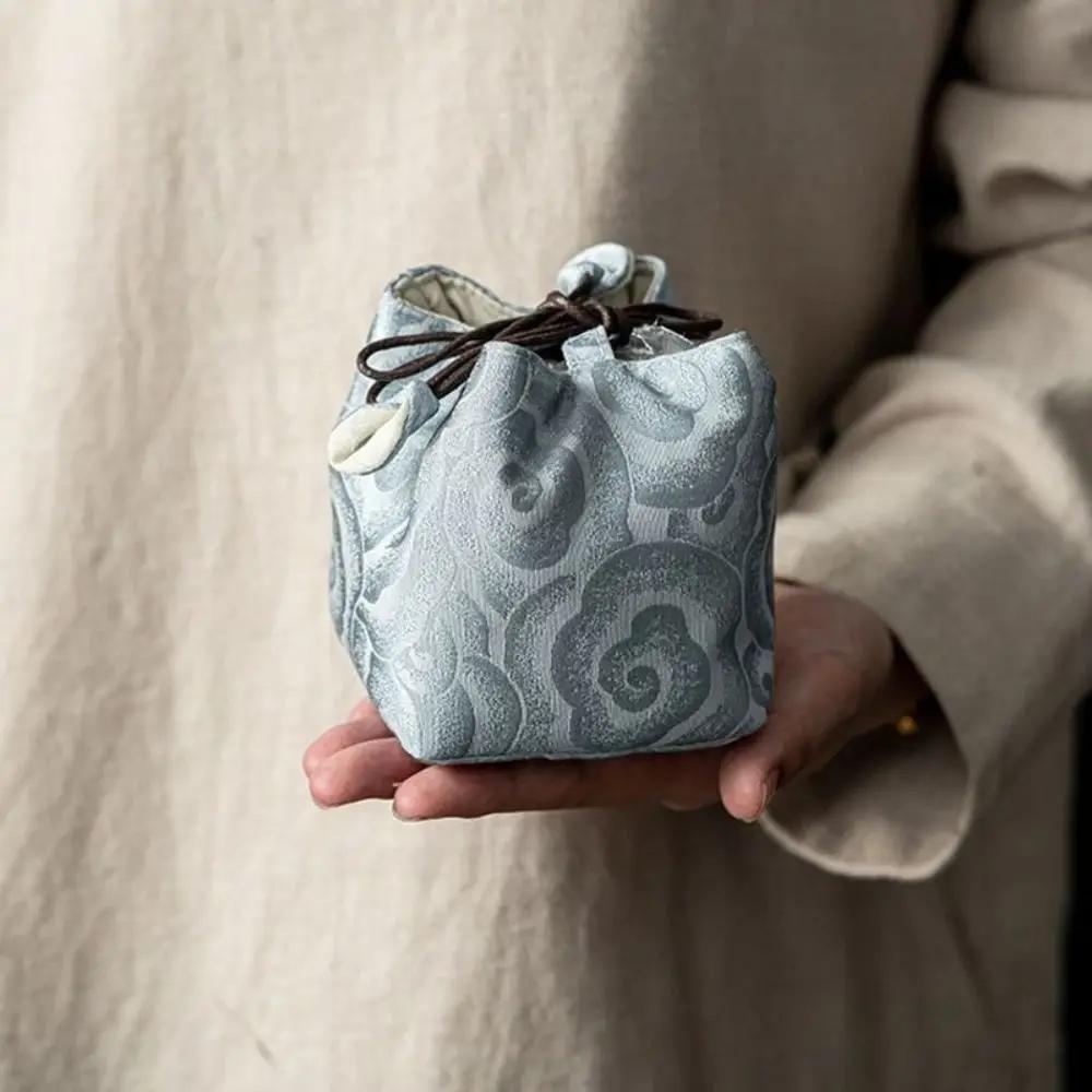 New Chinese Style Tea Set Storage Bag Thickened Embroidered Candy Storage Bag Portable Teapot Cloth Pouch Teacup Drawstring Bag