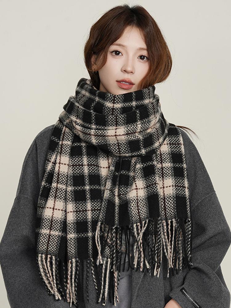 Retro Knitted Scarf Winter Women Men Casual Preppy Plaid Print Tassel Warm Scarve Pashmina Mujer Male Foulard Wrap Shawl Unisex