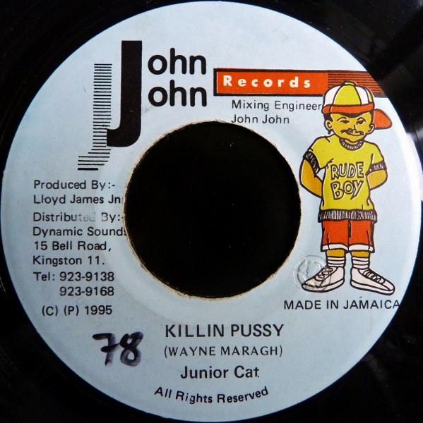 7inch Record JUNIOR CAT Killin Pussy none John John Recor 1995 Jamaica Reggae Ska Dub Used