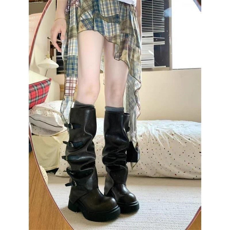 Spice Girl Maillard Platform Boots Women's Belt Buckle Pants Boots Wasteland Knight Boots