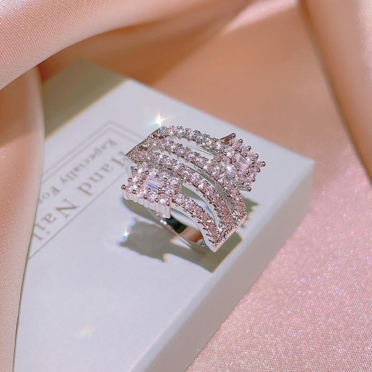 Geometric Line Wrapped Zircon Ring Full Diamond Combination Ring Accessories