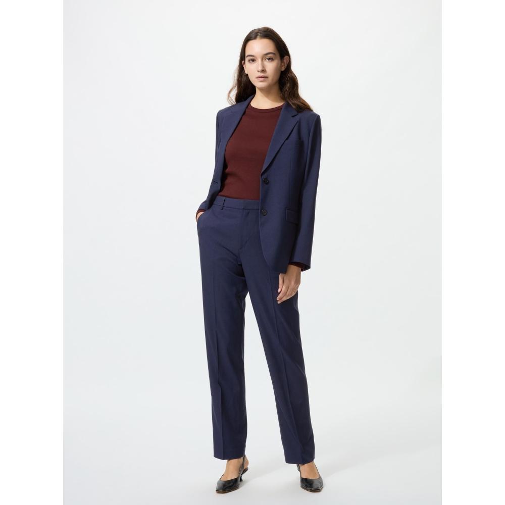 The UNIQLO Japan Impressive Slim Pants Long Length is a women's slim straight pant that perfectly fits the waist and hips, making the legs look long and beautiful. It features a comfortable fit with a straight silhouette, making it suitable for both business and daily life.