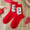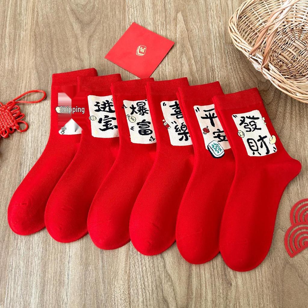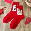 Leuchtend Rote Neujahrs-Wohlstandssocken bis zur Wade für Damen - Trendige Glücks-Hochzeitssocken