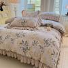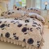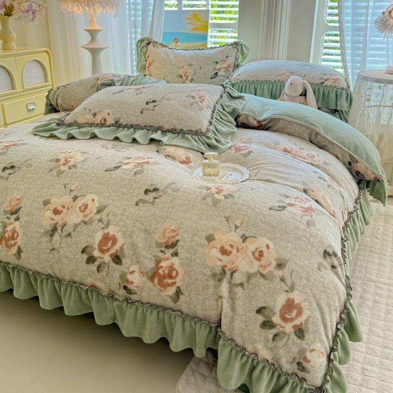 G5Z Winter-Samt Prinzessinnen-Spitzen Bettwäsche-Set - Flanell Bettdecke und Laken, Koralle, Vierteilig.