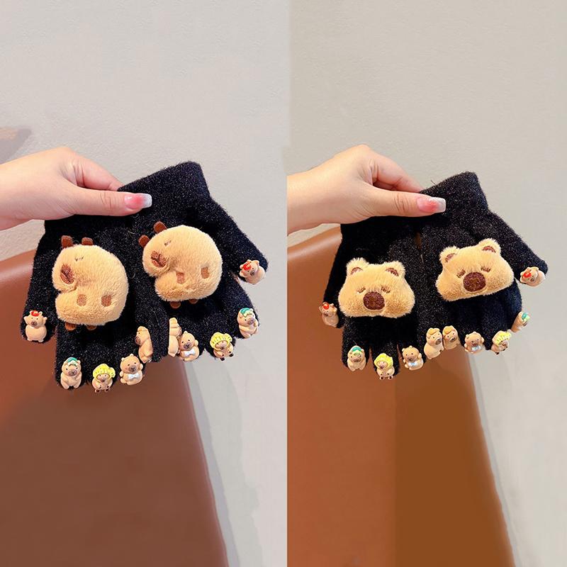 1 Paar Niedliche Cartoon Capybara Handschuhe Kinder Winter Dicke Handschuhe Outdoor Winddicht Warme Handschuhe Kältefest Fünffingerhandschuhe Geschenke