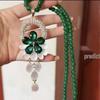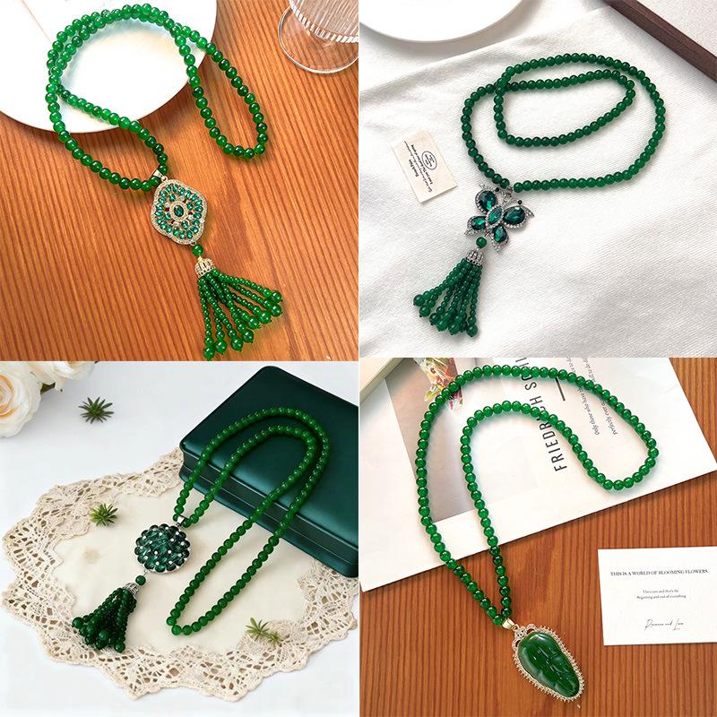 Vielseitige grüne Ruyi-Anhänger-Halskette - Hochwertiger Retro-Stil für Damen