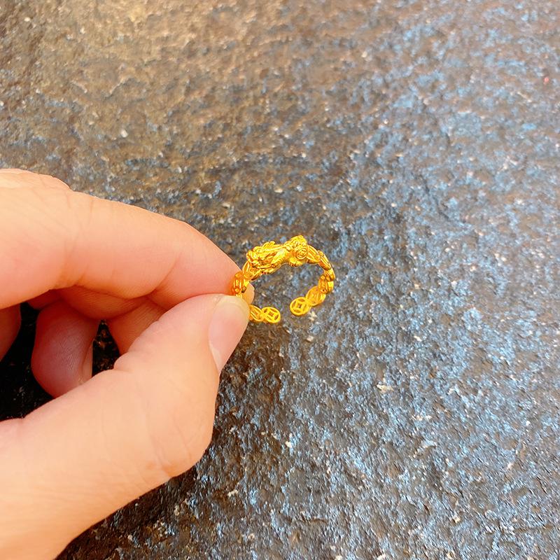 Vietnamesischer Pixiu Goldmünzring: Vergoldeter Gelbmessing Schmuck Geschenk