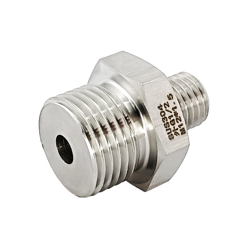 Edelstahl 304 Reduzierstück, Außengewinde M12x1.5 auf Außengewinde G1/2 BSP PF (0565)