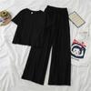 Damen Pyjama Weiche Baumwolle 2-teiliges Pyjama-Set Schwarz Grau Lässig Rundhals Damen Oberteil Lockere Hose Hausanzug Kleidung