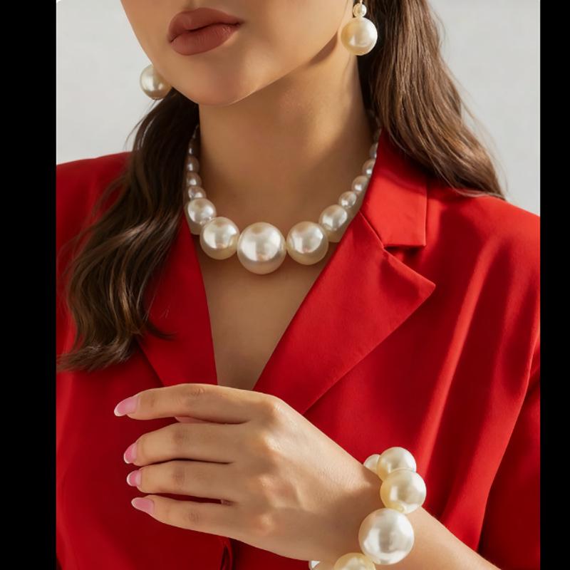 Exquisites französisches Luxus-4-teiliges Set: Halskette, Armband & Ohrringe mit Perlenimitat