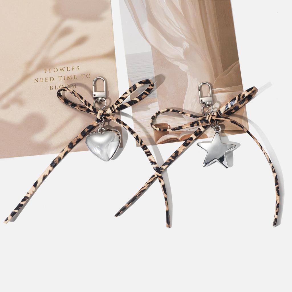 Schlüsselanhänger Anhänger mit Leopardenmuster Schleife & Herz Stern