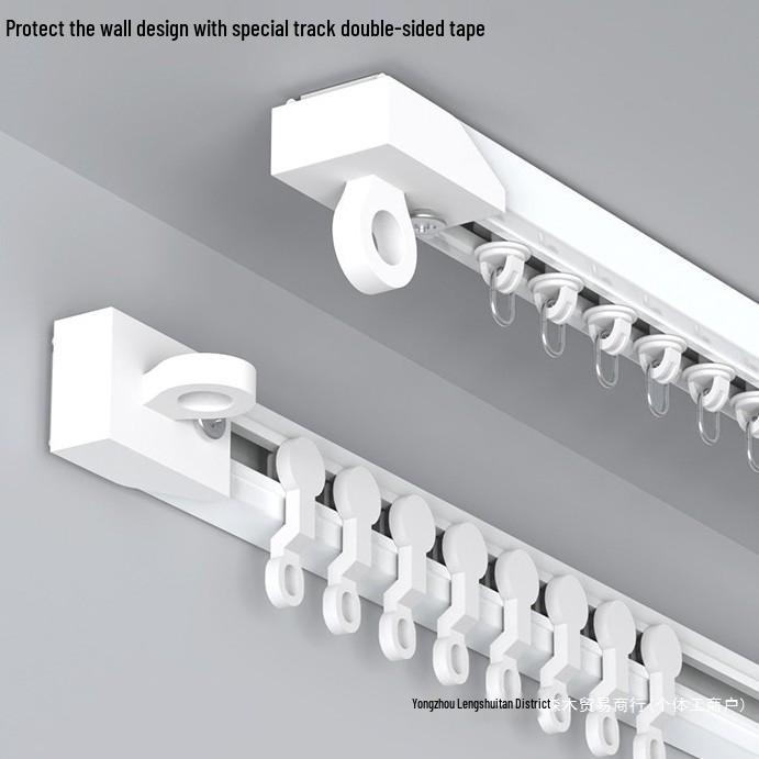 Klebe-Vorhangschiene ohne Bohren: Haken-Typ Nagelfreie Gleitschiene mit Rolle für Einspurvorhänge