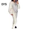 2 Teile/satz Frauen Hoodie Hosen Anzug Strass Dekor Lange Ärmel Patchwork Sport Sweatshirt Elastische Taille Hose Fitness Outfit Herbst Frühling Trainingsanzug