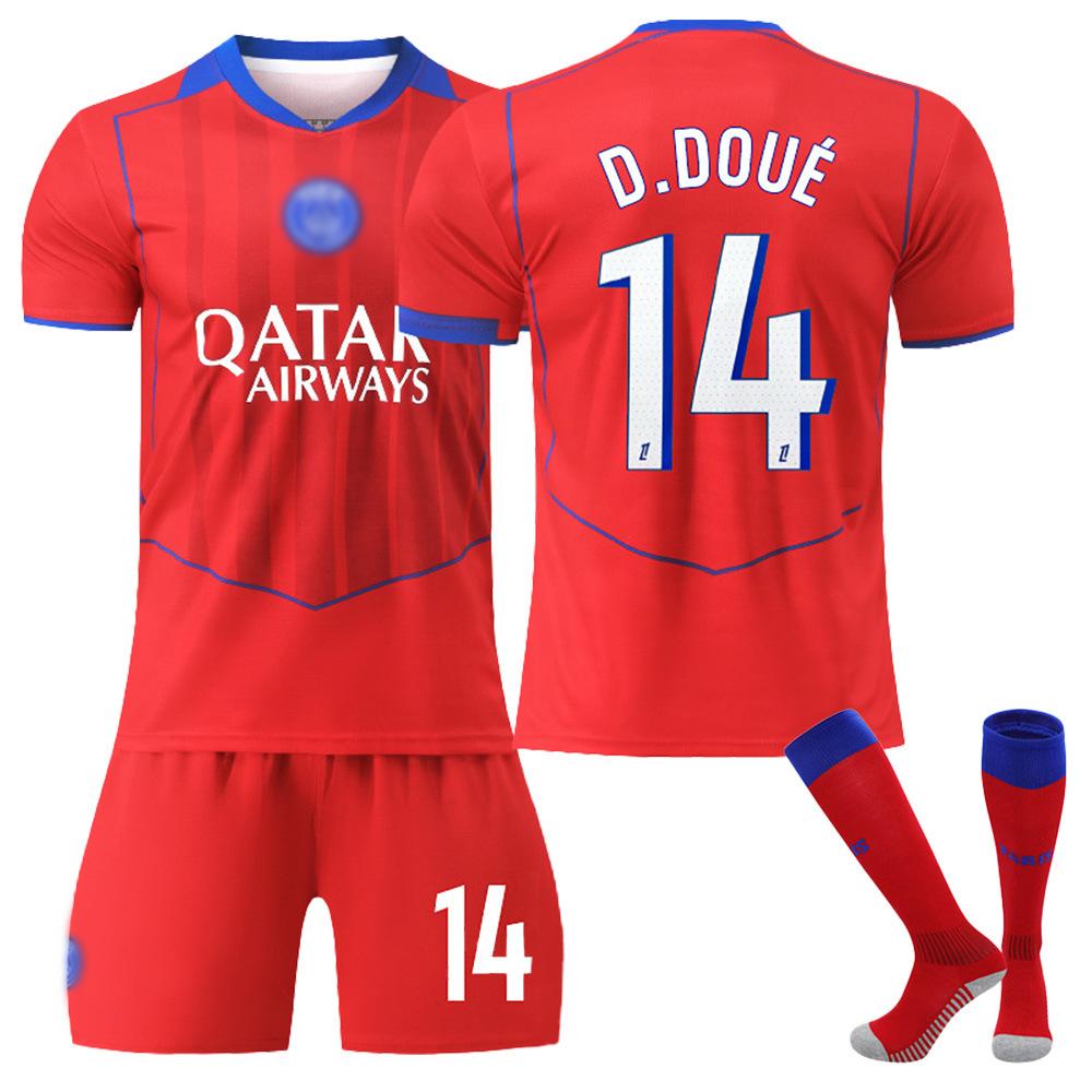 Jugendliche Kinder Erwachsene Benutzerdefinierter Name Fußballtrikots 25/26 PSG 2. Auswärts #14 D.Doué Sport Trainings-Trikot-Set mit Socken