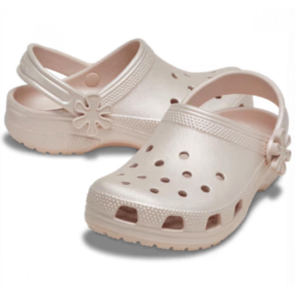 The Crocs Classic Pearl Shine Clog Kids 212814-6UR is a children's slipper that offers the softness and lightweight qualities of Croslite material. The product features a breathable structure designed for comfortable wear during the summer. Available in various color options.