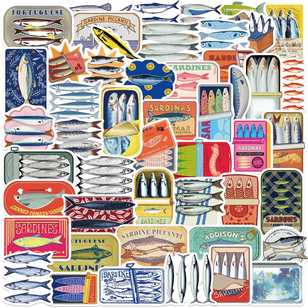 50 wasserdichte Sardinen-Aufkleber für Scrapbooks/Handyhüllen