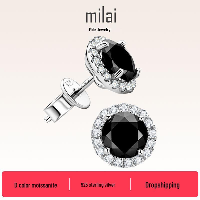 Elegante schwarze Moissanit-Steckohrringe für Damen aus S925 Sterlingsilber