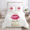 Rote Lippen Königin King Bettbezug 3D Sexy Lippen Himbeere Bettwäscheset für Mädchen Frauen Kuss Pink Weich 2/3-teilig Bettdeckenbezug Kissenbezug