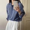 Embroidered Blue Plaid Blouse Womens Long-sleeved Spring and Autumn Comfortable Fit Leisure Top
