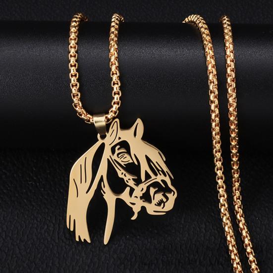 Modischer Anhänger mit hohlem Pferdekopf: Fallen Sie auf mit der einzigartigen Silhouette eines hohlen Pferdekopfanhängers, der diese Halskette schmückt.. Verleihen Sie Ihrem Ensemble einen trendigen und unverwechselbaren Stil, der einen Hauch von Individualität hinzufügt, und machen Sie es zu einem idealen Geschenk für Ihre Lieben zu verschiedenen Anlässen.