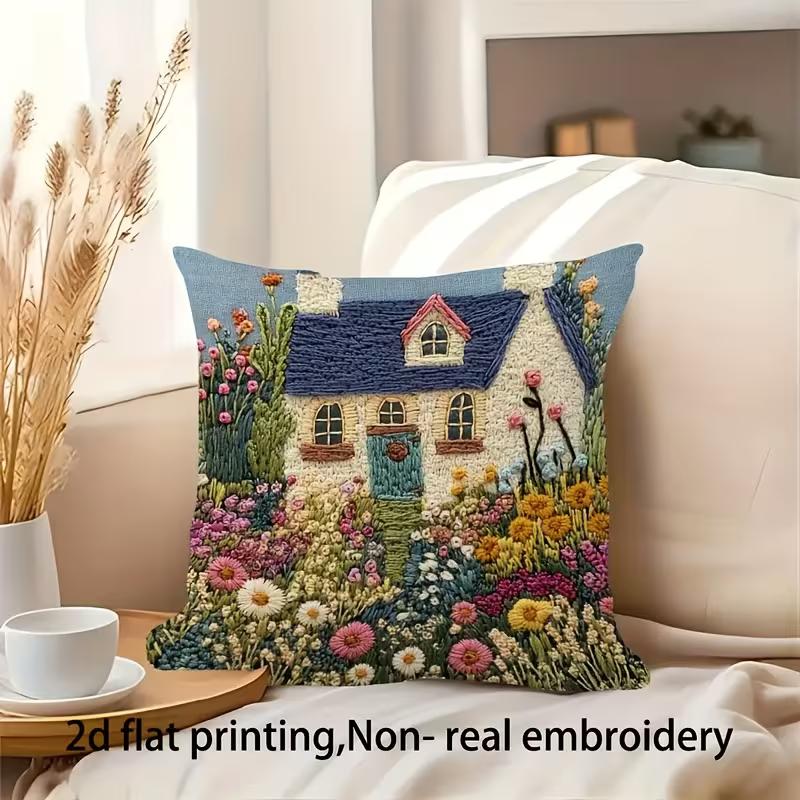 Retro color printing pillowcase: 2D flat printing, non-real embroidery, night sofa, night sofa cushion