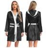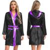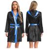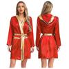 Damen Box Robe Halloween Cosplay Kostüm Langarm Offene Vorderseite Metallische Borte Satin Kapuze Umhang mit Gürtel
