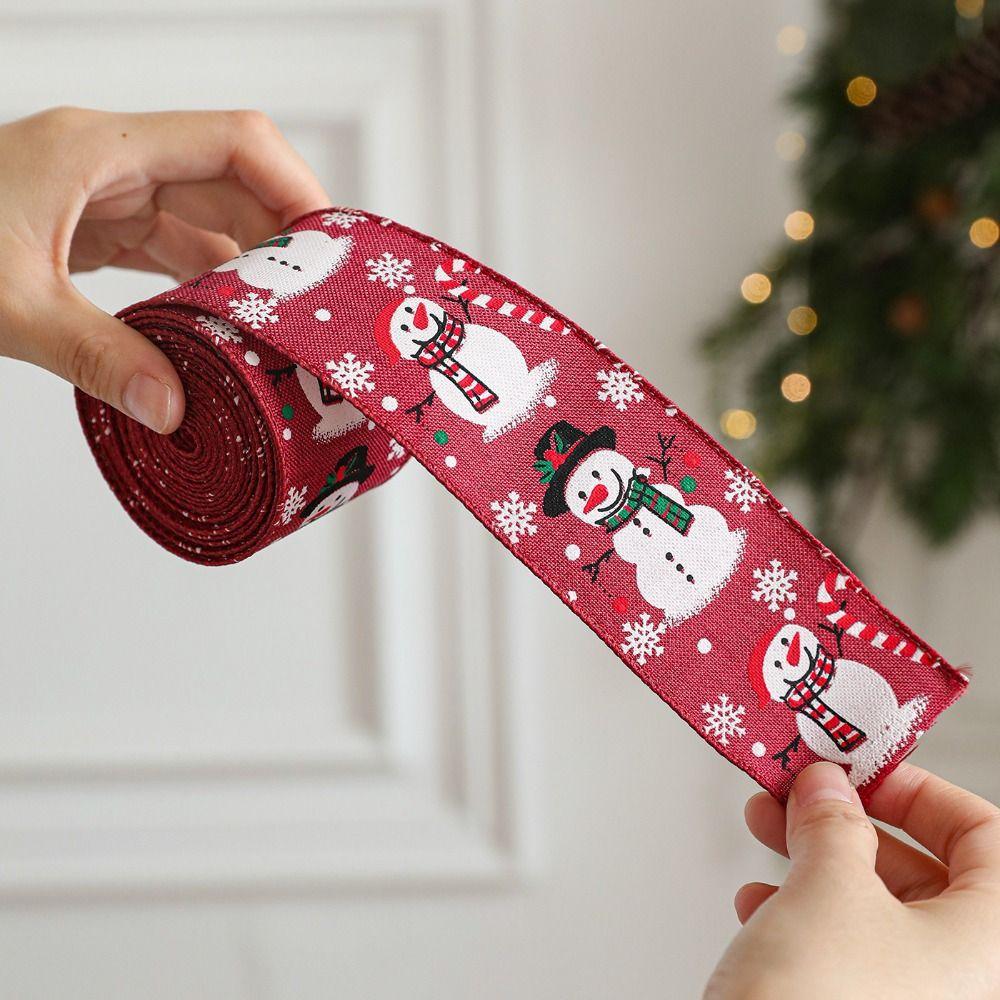 Cartoon 2M/Roll Christmas Tree Ribbon Reinforced Edge Fabric Gift Packaging Webbing Funny DIY Wreath Making Tool Xmas