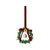 Flocked Bow Bells Wreath with Red Berries for Christmas Tree Decoration, Holiday Floral Garland for Door Hanging