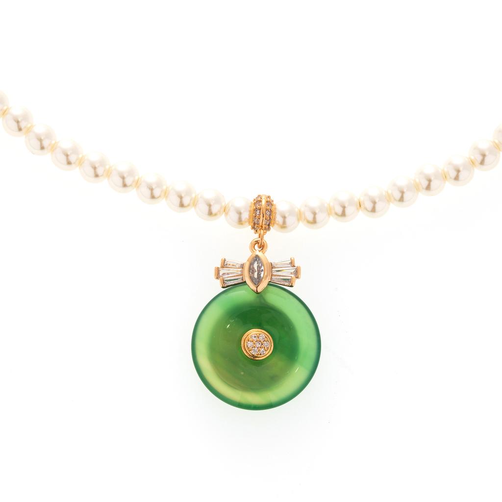 Green Safety Buckle Pendant Autumn And Winter Millet Bead Pearl Pendant Light Luxury Agate Collarbone Chain Women'S Necklace
