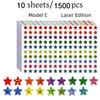 Motivate and reward children with this comprehensive 1500-star sticker set! Includes 10 unique sheets featuring four varieties: Classic Style 1, Classic Style 2, Laser Effect Style 1, and Laser Effect Style 2. Dazzling rainbow holographic stickers sparkle brilliantly under light, while classic designs are perfect for everyday rewards. Glossy, smudge-resistant finish ensures lasting shine. Strong self-adhesive sticks firmly to paper, notebooks, calendars, and smooth surfaces. Ideal for reward charts, classroom behavior incentives, homework tracking, planners, journals, and craft projects.